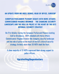 EuroCOP European Parliament Plenary debate with Home Affairs Commissioner Magnus Brunner, October 2025 The changing security landscape and the role